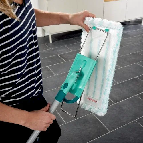Niente più mal di schiena durante la pulizia, niente più striature antiestetiche. Il Profi micro duo di Leifheit rimuove anche lo sporco più ostinato grazie al suo speciale rivestimento a 2 fibre e consente una comoda gestione con il comando a pedale. È il mop ideale per grandi aree, come cucine o uffici. Il rivestimento a 2 fibre è realizzato con la collaudata combinazione di microfibre di Leifheit. Le file di setole sottili e leggermente sporgenti raggiungono le cavità più piccole e rimuovono senza fatica anche lo sporco più ostinato. Può essere lavato in lavatrice fino a 400 volte a 60°C senza perdere il suo potere pulente. Grazie alla sua notevole larghezza di 42 cm, il Profi micro duo consente di risparmiare molte fasi di lavoro e di risparmiare tempo prezioso. Lo snodo girevole a 360°, completamente mobile, consente di pulire efficacemente anche nei percorsi tortuosi e racchiude abilmente le gambe di tavoli e mobili. Grazie al manico completamente girevole, è possibile raggiungere facilmente i punti più difficili da raggiungere sotto armadi e letti. Il mop è particolarmente comodo da usare in piedi. Basta un clic sul pedale per sganciare il coperchio, strizzarlo con lo strizzatore professionale Leifheit disponibile separatamente e riavvitare il coperchio. E il gioco è fatto.- Per una pulizia particolarmente accurata di piastrelle e pavimenti in pietra