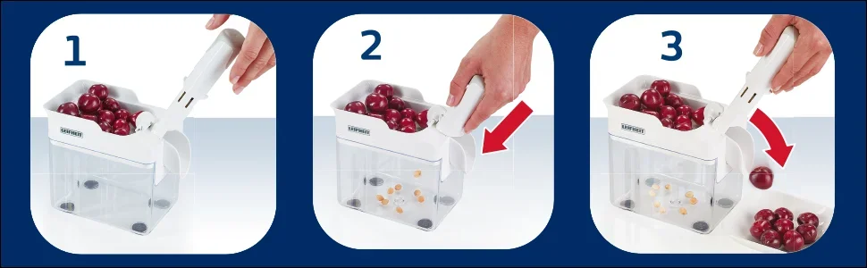 Si lavora in modo intelligente, pulito e veloce con lo snocciolatore per ciliegie Leifheit