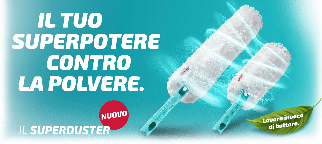Il soffice piumino SUPERDUSTER è un aiuto adatto per rimuovere la polvere, soprattutto negli ambienti dove sono presenti molte superfici irregolari e delicate.